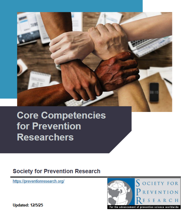 We are pleased to announce the release of this report, entitled Core Competencies for Prevention Researchers. The goal of this report is to help define prevention science; to identify the assumptions, principles, and key domains that fall within this definition; and to describe specific competencies that characterize each domain. The report highlights the fundamental roles of epidemiology and etiology of risk, promotive, and protective factors for health, behavior, and societal problems; it highlights advancements and innovations in basic and applied research, including the evaluation of preventive interventions; it addresses both the development and adaptation of these interventions; and it recognizes the growing importance of their dissemination and implementation with our focal populations. The report was informed through extensive interviews with prevention researchers, focus group discussions with prevention practitioners, interactive roundtable conversations with prevention research conference attendees in the U.S. and internationally, and reviews of prevention course syllabi and peer-reviewed literature.